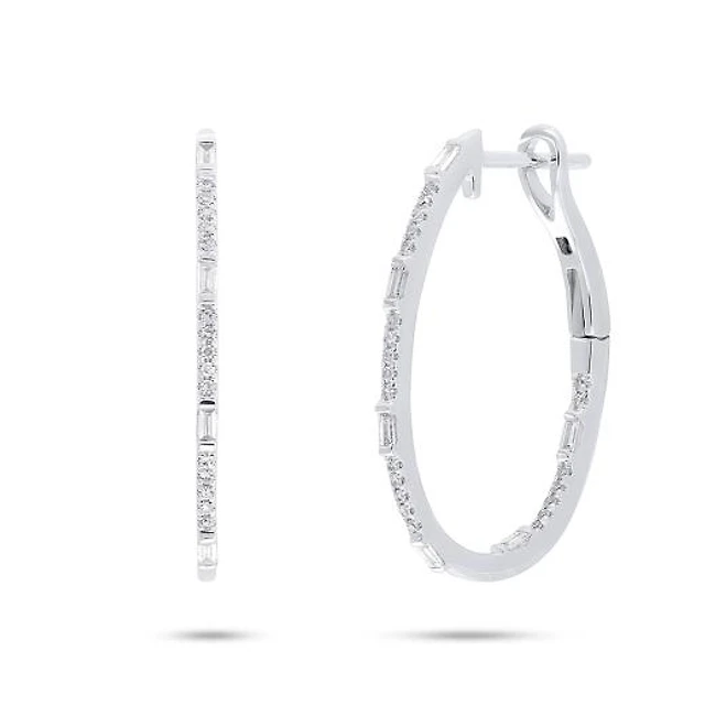 14K White Gold 0.31CTW Diamond Oval Hoop Earrings