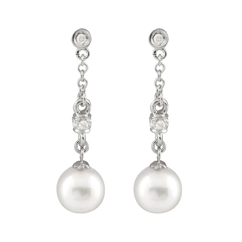 14K White Gold 7-8mm Akoya Pearl & Diamond Earrings