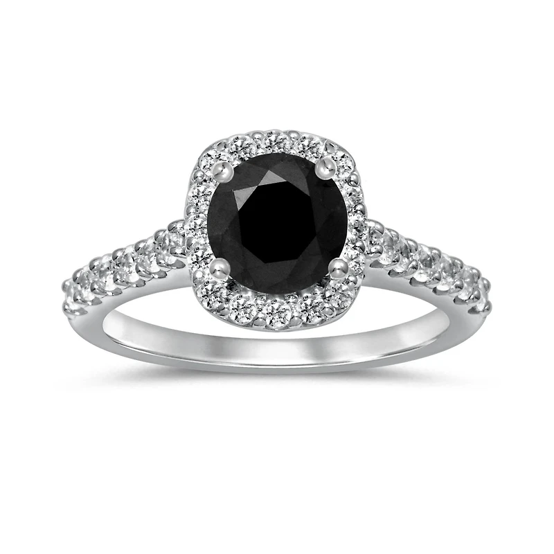 A ring this dramatic deserves to shine! Designed with a lavish 1.50ct midnight diamond at its centre, contrasted with a white diamond halo and band, this ring is the perfect balance of glamour and sophistication.