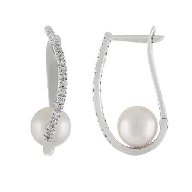 14K White Gold Dangling 7-7.5mm Akoya Pearl & Diamond Earrings