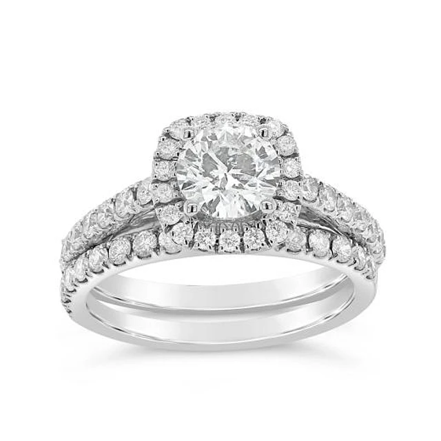 14K White Gold Lab Grown Cushion Halo 2.00CTW Diamond Bridal Set
