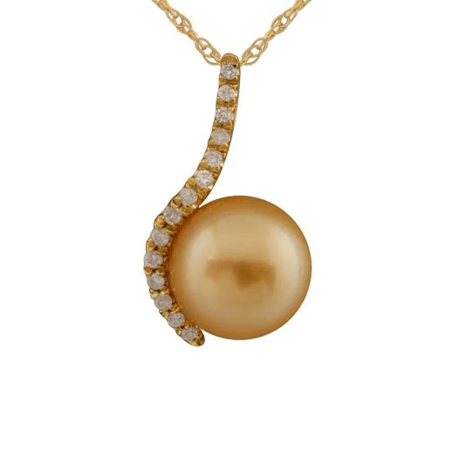 14K Yellow Gold 10mm Golden South Sea Pearl & Diamond Pendant