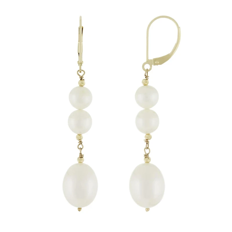 14K Yellow Gold 6-7mm, 10-11mm Pearl Leverback Earrings