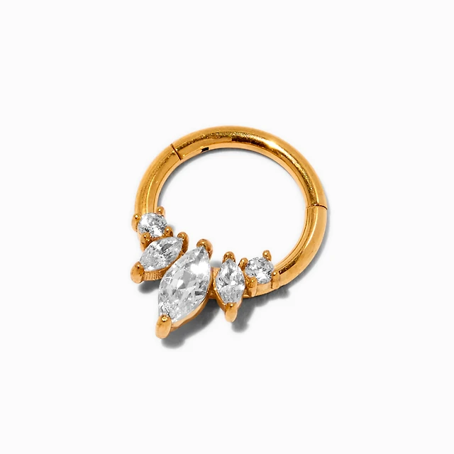 16G Gold-tone Stainless Steel Cubic Zirconia Crown Septum Nose Hoop