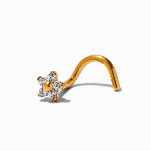 18G Gold-tone Titanium Cubic Zirconia Flower Nose Stud