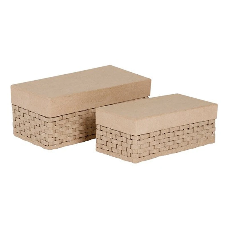 2-Pack Papier-Mâché Braided Baskets - Rectangular