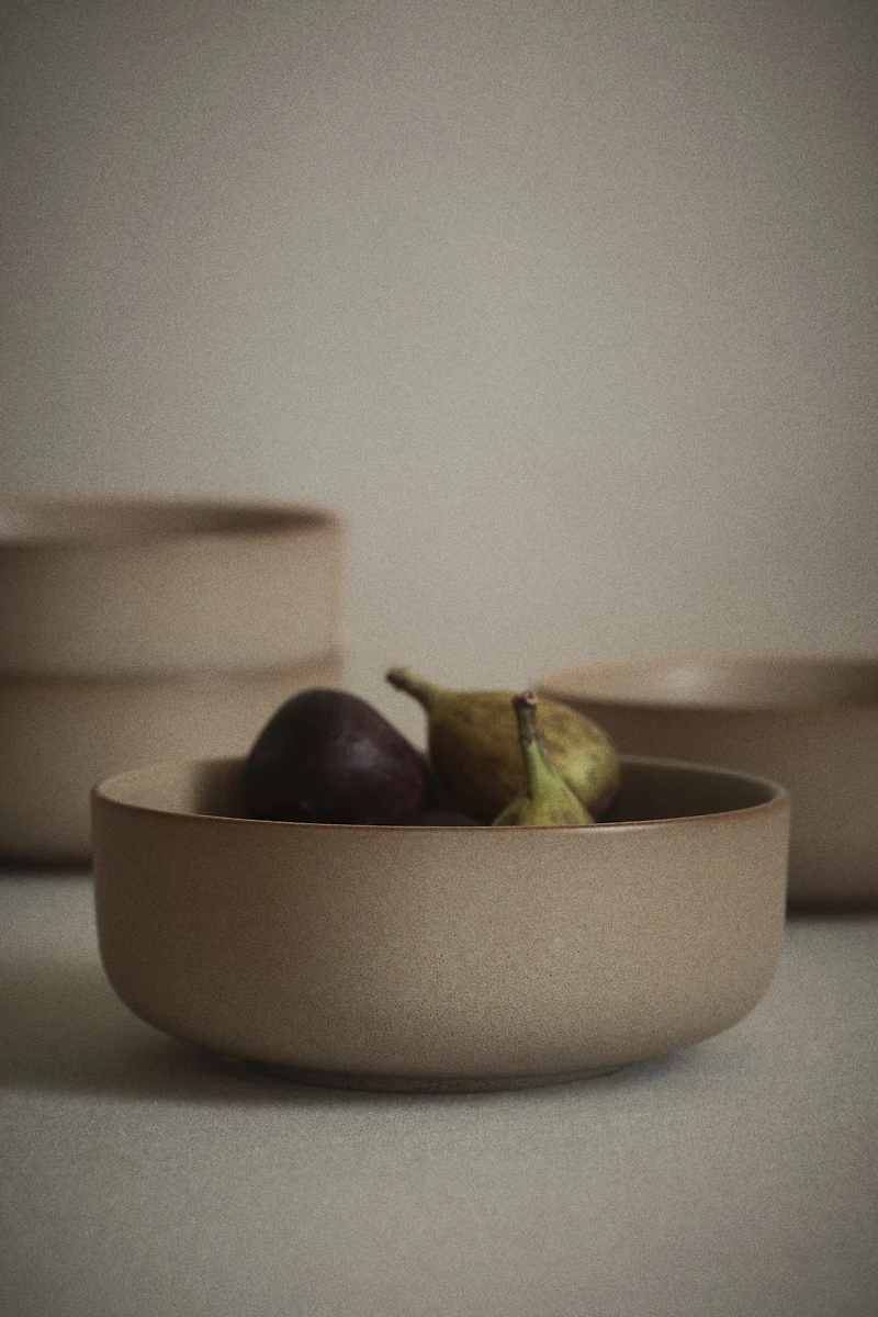 Two bowls in stoneware. Reactive glaze creates beautiful, variegated coloring, giving each bowl a unique appearance.