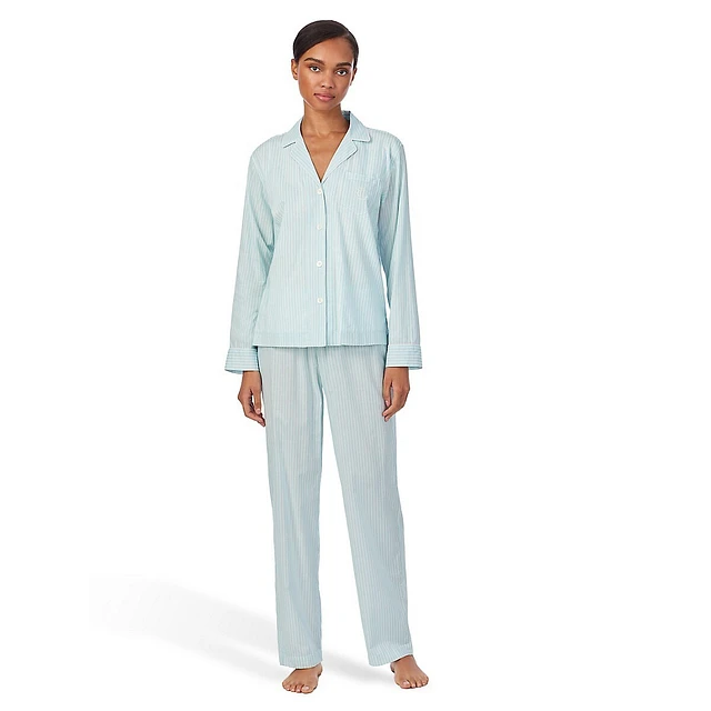 2-Piece Notch-Collar Shirt & Long Pants Pyjama Set