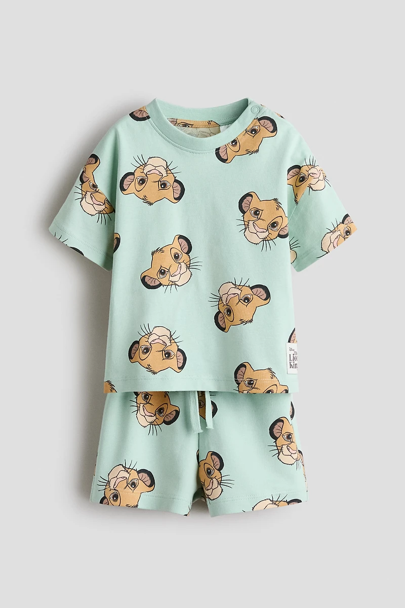 Set with a T-shirt in jersey and sweatshorts in lightweight fabric, both with a printed design. T-shirt with a round neck with snap fasteners at one side (sizes 2–4Y without snap fasteners) and dropped shoulders. Shorts with an elasticized, drawstring waistband.