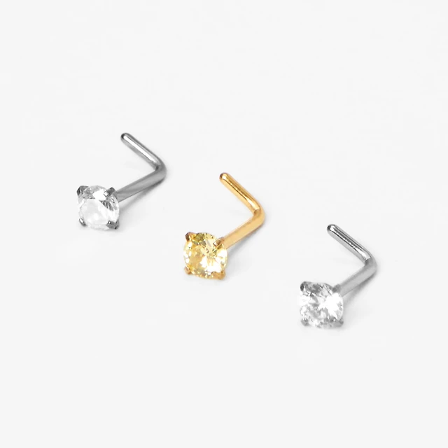 20G Mixed Metal Stainless Steel Crystal Nose Studs - 3 Pack