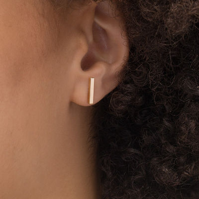 Set a fashionable tone with these sleek stud earrings. Fashioned in 14K gold, each earring displays a length of 2.0mm-wide bar. Polished to bright shine, these on-trend post earrings secure comfortably with friction backs.