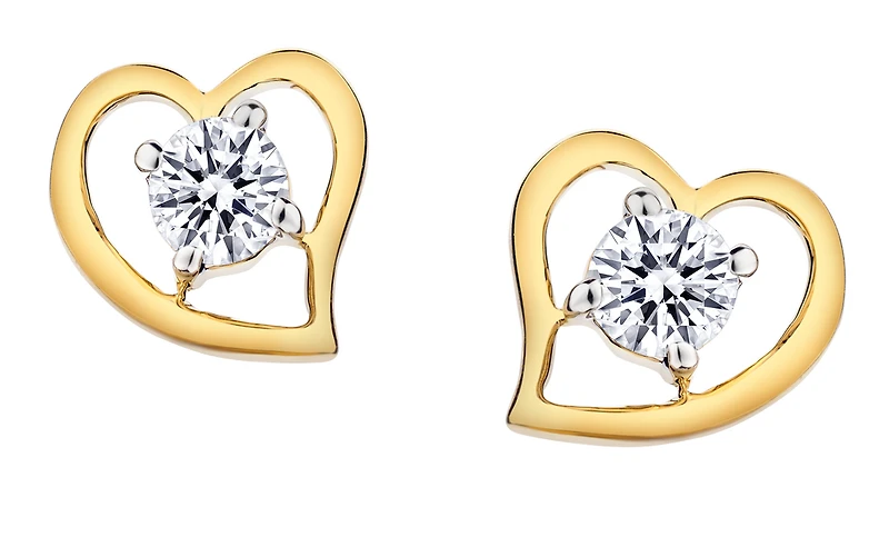 .34 Carat of Lab Grown Diamonds Heart Stud Earrings, 10kt Yellow Gold.....................NOW