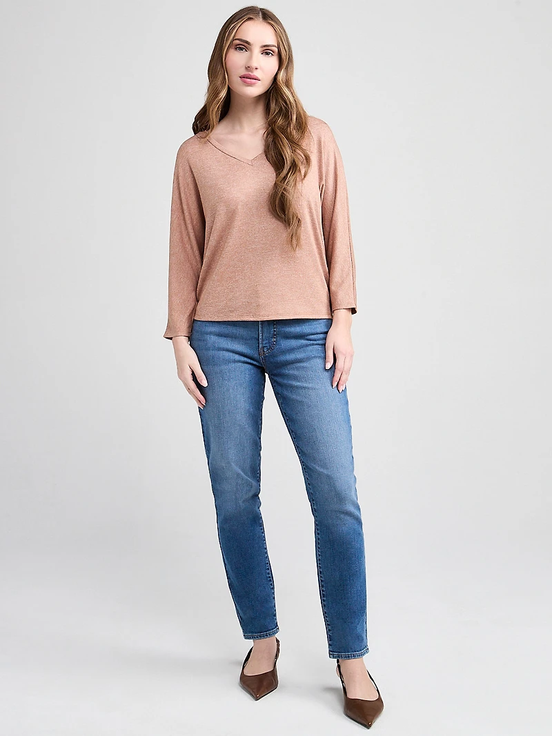 3/4 Sleeve V-Neck Hacci Top Cognac
