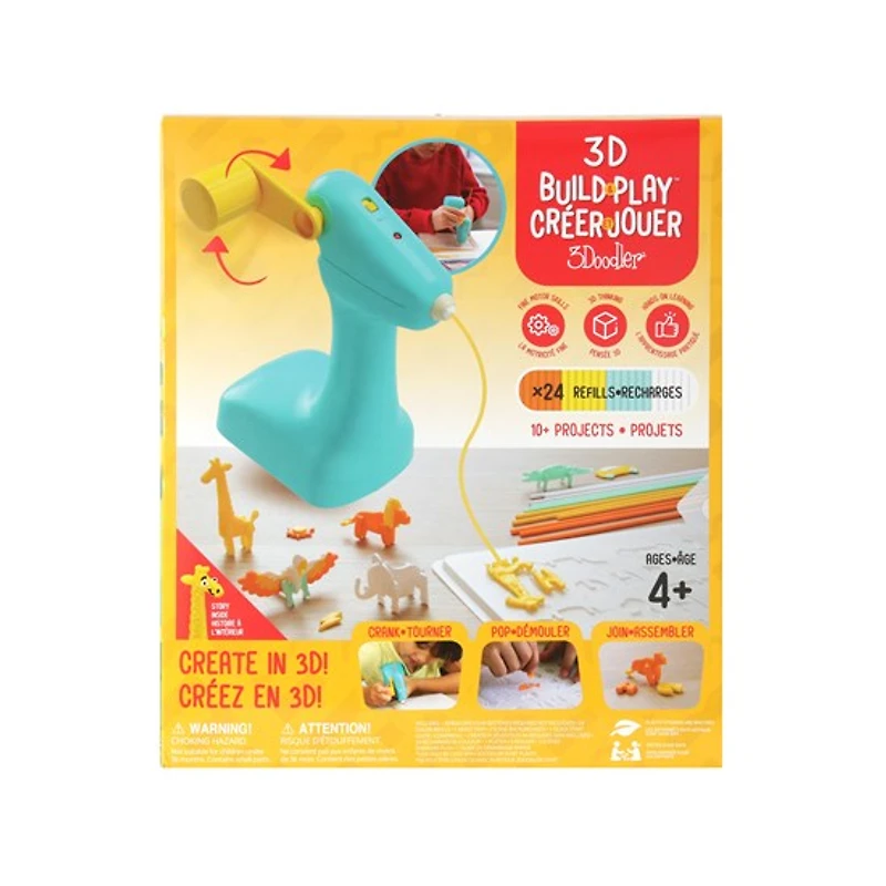 Make story time imaginative for children by letting them create characters as they go with the 3Doodler 3D Build & Play. Including 3D moulds so your little one can easily create characters, it features an ergonomic crank making it easy to use and hold. It enhances fine motor skills and three-dimensional thinking through hands-on learning. Crafted with BPA-free materials. Batteries not included.Includes 24 plastic strands, story moulds, 3D Build & Play instructions.