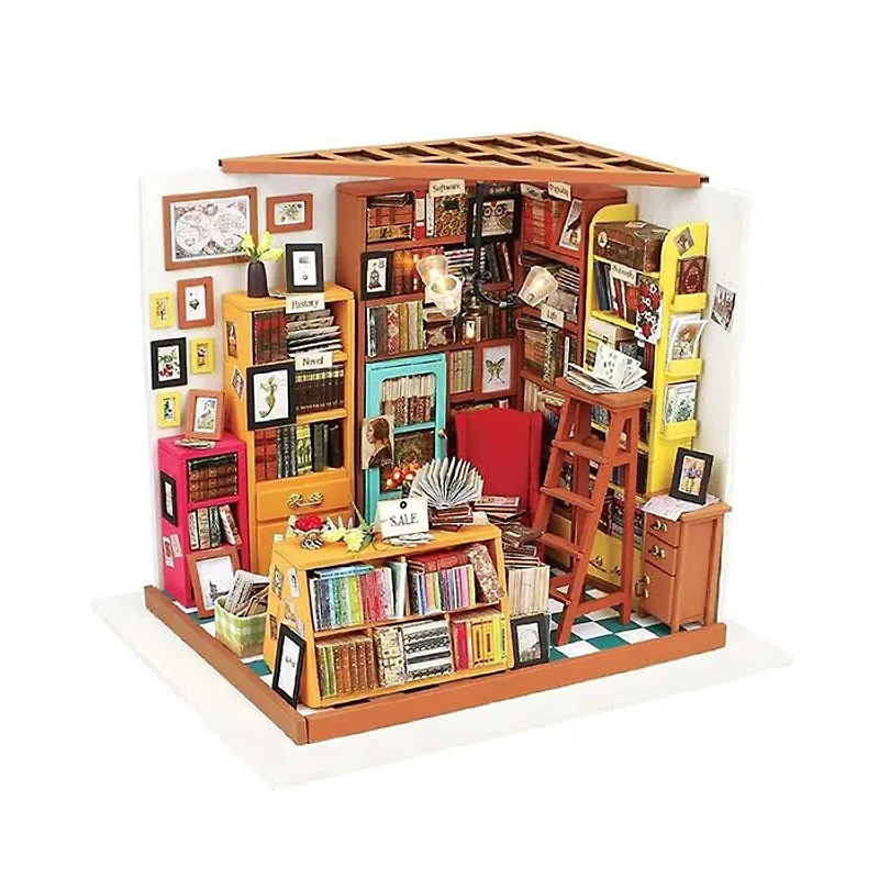 3D Wooden Miniature Dollhouse Sam's Study with Display Case | This product, titled 3D Wooden Miniature Dollhouse Sam's Study with Display Case, is meticulously crafted and comes fully assembled with an elegant display case.