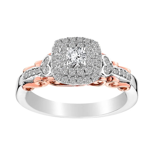 .05 Carat of Diamonds Double Heart Ring, 10kt Two Tone.....................NOW