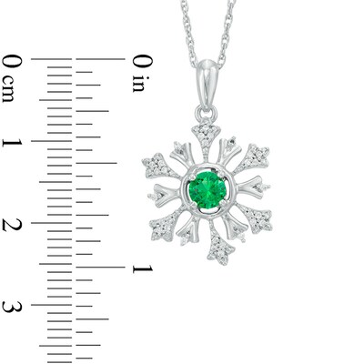 4.5mm Lab-Created Emerald and 0.09 CT. T.W. Diamond Snowflake Pendant in Sterling Silver