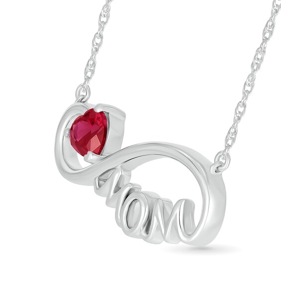 5.0mm Heart-Shaped Lab-Created Ruby "MOM" Infinity Necklace in Sterling Silver