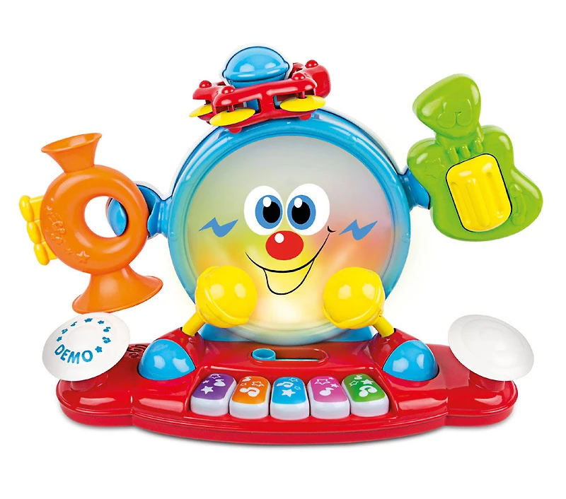 With this 6-in-1 Live Band Set, your child will be introduced to the drum, the piano and the cymbals. With detachable trumpet, guitar, and tambourine, the band is complete!