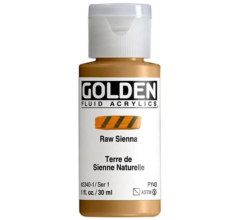 Equal the intensity of GOLDEN Heavy Body Acrylics, but with an even, flowing characteristic useful for fine brushwork, glazing, staining, water media techniques, and much more. You can mix Fluid Acrylics with GOLDEN Airbrush Medium for airbrush application of artwork including textiles. They blend easily with all acrylic colours, and readily tint gels, mediums, gessoes and grounds.