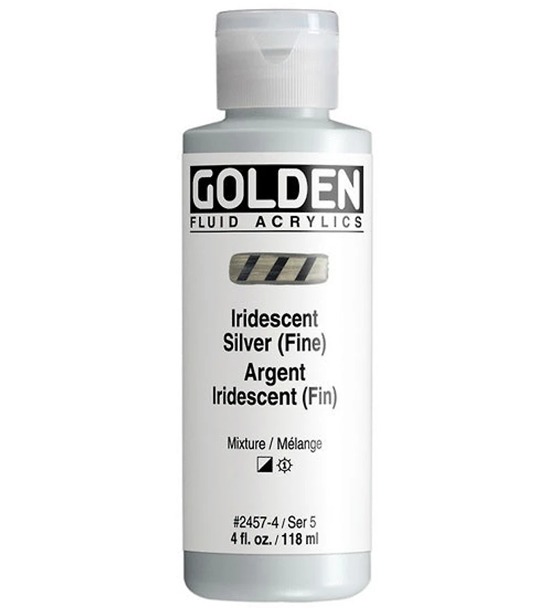 Equal the intensity of GOLDEN Heavy Body Acrylics, but with an even, flowing characteristic useful for fine brushwork, glazing, staining, water media techniques, and much more. You can mix Fluid Acrylics with GOLDEN Airbrush Medium for airbrush application of artwork including textiles. They blend easily with all acrylic colours, and readily tint gels, mediums, gessoes and grounds.
