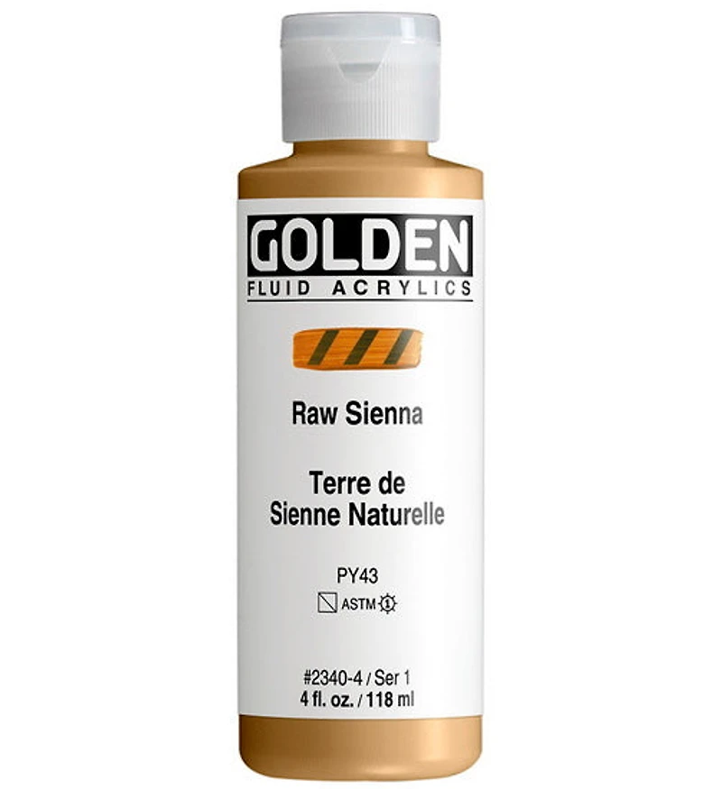 Equal the intensity of GOLDEN Heavy Body Acrylics, but with an even, flowing characteristic useful for fine brushwork, glazing, staining, water media techniques, and much more. You can mix Fluid Acrylics with GOLDEN Airbrush Medium for airbrush application of artwork including textiles. They blend easily with all acrylic colours, and readily tint gels, mediums, gessoes and grounds.  GOLDEN Fluid Acrylics are created by loading an acrylic polymer binder with concentrated levels of quality pigments for a wide selection of permanent and lightfast colours. No fillers or extenders are added to achieve the desired consistency, nor is the fluid quality achieved with additional water. GOLDEN Fluid Acrylics have the same pigment load as GOLDEN Heavy Body Acrylics, but in a viscosity similar to heavy cream. Fluids Acrylics allow for smooth flowing applications, while retaining colour intensity, tinting strength, film integrity and adhesion.