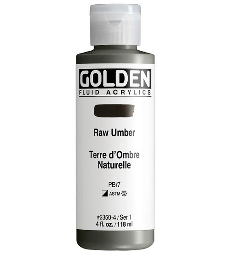 GOLDEN Fluid Acrylics are created by loading an acrylic polymer binder with concentrated levels of quality pigments for a wide selection of permanent and lightfast colours. No fillers or extenders are added to achieve the desired consistency, nor is the fluid quality achieved with additional water. GOLDEN Fluid Acrylics have the same pigment load as GOLDEN Heavy Body Acrylics, but in a viscosity similar to heavy cream. Fluids Acrylics allow for smooth flowing applications, while retaining colour intensity, tinting strength, film integrity and adhesion.