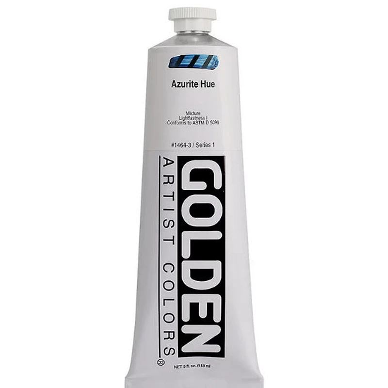 Bring brilliance and depth to your artwork with Golden Heavy Body Azurite Hue (5?oz). This intense, translucent blue, inspired by classic azurite shades, is perfect for luminous layering, subtle glazing, or rich color blocks in your artistic compositions. Golden Heavy Body acrylics feature a thick, smooth, buttery consistency that retains brushstrokes and palette knife marks while providing precise and even application. Its transparency allows for subtle mixing and refined luminous effects with other acrylic colors. Formulated without fillers, extenders, opacifiers, toners, or artificial dyes, each color is uniquely developed according to the nature of its pigments, ensuring maximum intensity and exceptional color purity. Made with artist-grade pigments, this paint offers excellent permanence and lightfastness, keeping your artwork vibrant and brilliant over time. Versatile, it is suitable for traditional painting techniques, contemporary compositions, and mixed-media approaches.