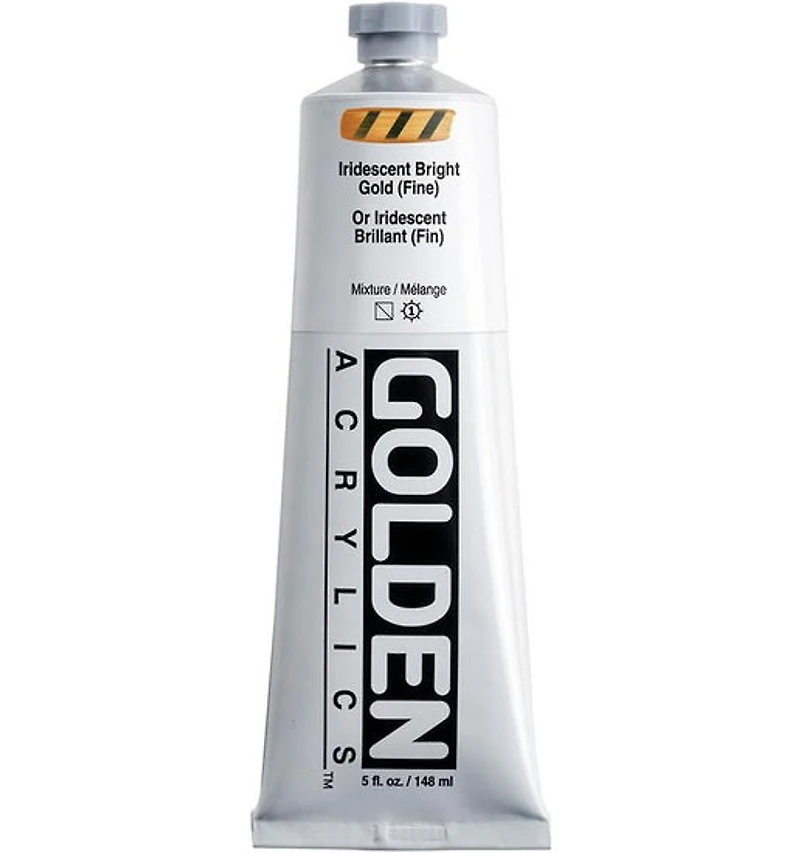 Add brilliance and sophistication to your artwork with Golden Heavy Body Iridescent Bright Gold (Fine) Acrylic (5?oz). This special hue features sparkling golden reflections that catch the light from every angle, providing a luminous, elegant glow that enriches your creations with a precious, refined dimension.