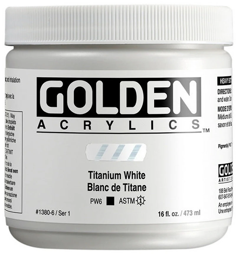 Heavy Body Acrylics are known for their exceptionally smooth, buttery consistency. The Heavy Body palette includes a large assortment of unique pure pigments in a 100% acrylic emulsion available to professional artists. These colours offer excellent permanency and lightfastness. There are no fillers, extenders, opacifiers, toners or dyes added. Features: all Golden products are compatible to slow drying time, use Golden Retarder To dilute Golden paints, use water or mediums suited for acrylics Tool maintenance: clean brushes with soapy water Surfaces: most surfaces, including canvas, cardboard, wood and metal Drying time: about 15 minutes for a thin coat, and about three hours for a thick coat (about ¾ in.)