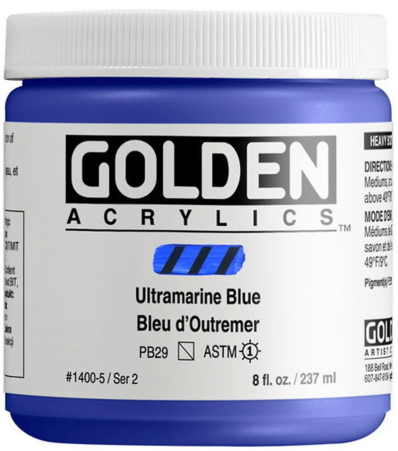 Heavy Body Acrylics are known for their exceptionally smooth, buttery consistency. The Heavy Body palette includes a large assortment of unique pure pigments in a 100% acrylic emulsion available to professional artists. These colours offer excellent permanency and lightfastness. There are no fillers, extenders, opacifiers, toners or dyes added. Features: all Golden products are compatible to slow drying time, use Golden Retarder To dilute Golden paints, use water or mediums suited for acrylics Tool maintenance: clean brushes with soapy water Surfaces: most surfaces, including canvas, cardboard, wood and metal Drying time: about 15 minutes for a thin coat, and about three hours for a thick coat (about ¾ in.)