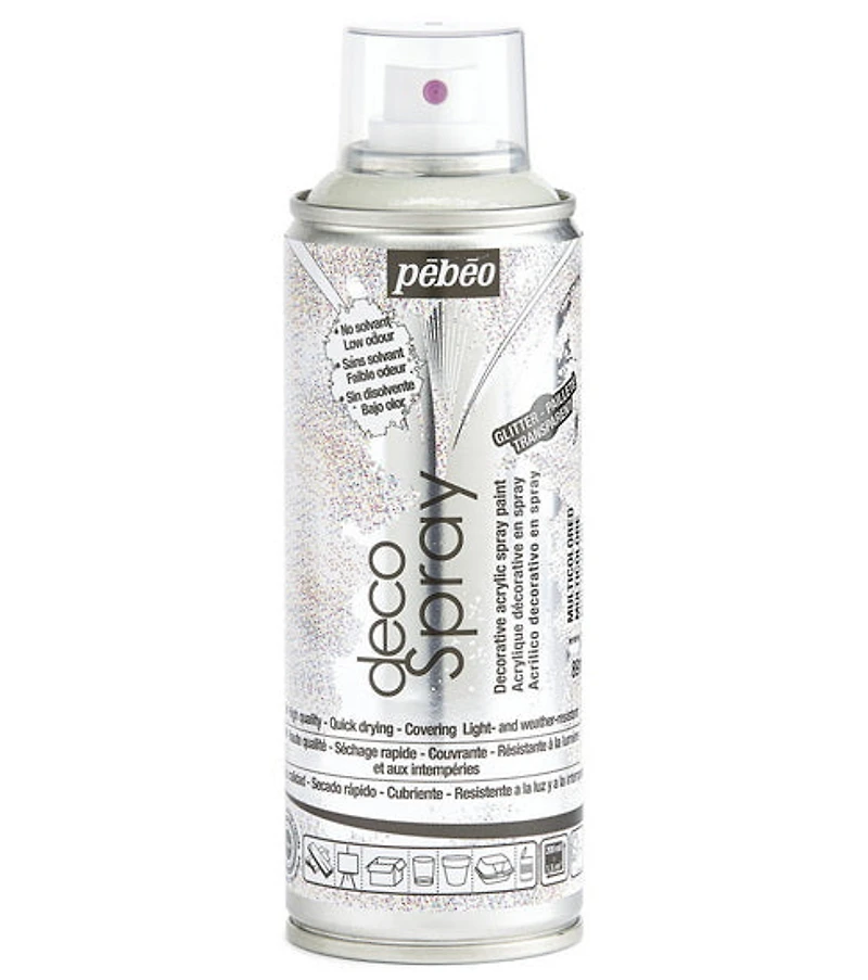 Designed for use on most surfaces, Pebeo Spray is a water-based (except Chrome colours) acrylic spray paint with a unique composition that combines very low-odour hydro soluble resins with very high-quality pigments. Solvents have been replaced by a water-based mixture, which allows for a slightly longer drying time than solvent-based spray paints, and results in a low odour, multi-surface paint (except in Chrome colours). The colours are permanent and opaque, and are available in a variety of effects: mat, glossy, fluorescent, pearl, glitter, chrome, chalk, chalkboard, granite.