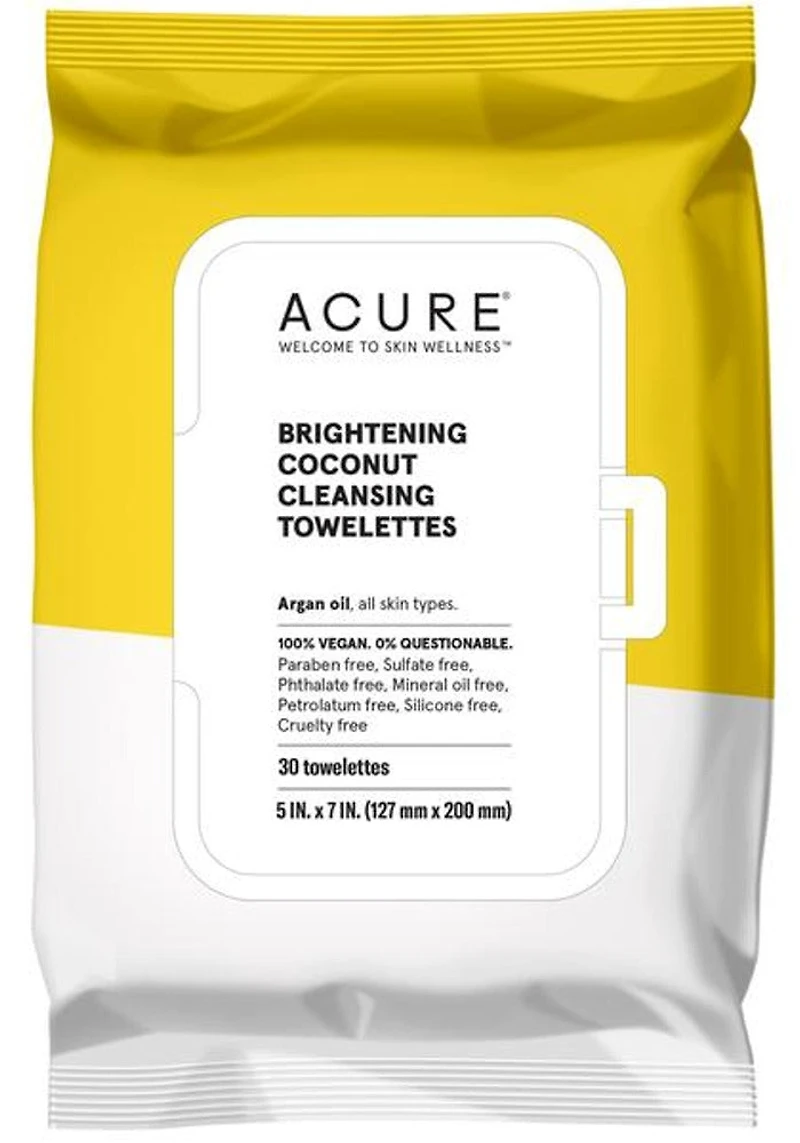 DescriptionAcure - Brightening Coconut Towelettes Tray - 3 30 ct Units - NPN: 00000000 -- Be gorgeous on-the-go with these coconut towelettes! Gently remove makeup, dirt, sweat, environmental toxins, and that mustard from the corner of your mouth. No splashy rinsing necessary! Be gorgeous on-the-go with these coconut towelettes! Gently remove makeup, dirt, sweat, environmental toxins, and that mustard from the corner of your mouth. No splashy rinsing necessary!Paraben free, Sulfate free, Mineral oil free, Petrolatum free, Silicone free, Cruelty free