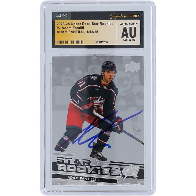 Adam Fantilli Columbus Blue Jackets autographié 2023-24 Upper Deck Star Rookies #2 CGC Fanatics a été témoin d'une carte recrue Auto 10 authentifiée
