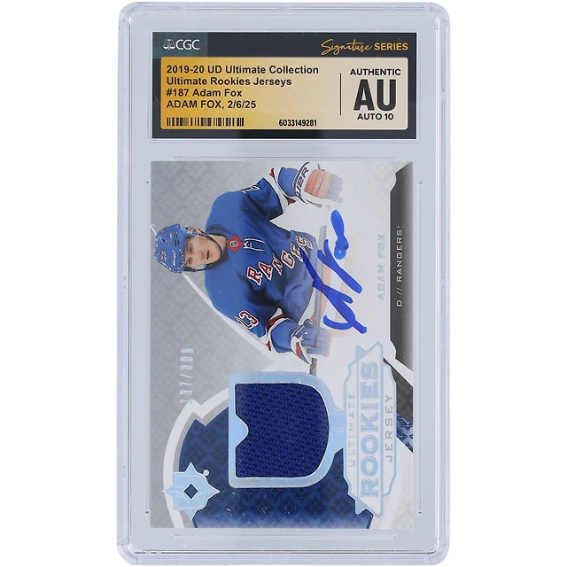 Adam Fox New York Rangers Autographié 2019-20 Upper Deck Ultimate Collection Ultimate Rookie Jersey Relic #187 #/399 CGC Fanatics Witnessed Authenticated Auto 10 Rookie Card