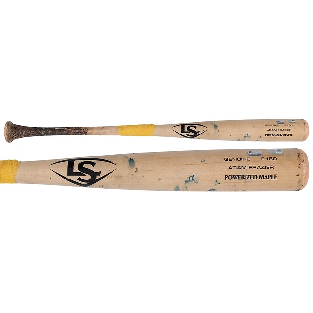 Adam Frazier, batte de baseball des Pirates de Pittsburgh, Tan Louisville Slugger, utilisée lors du match contre les Guardians de Cleveland, le 19 avril 2025