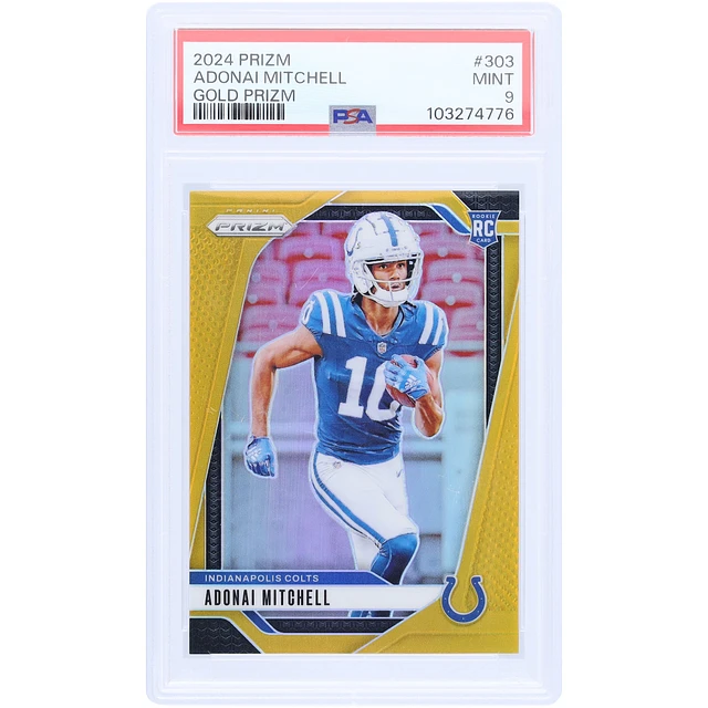 Adonai Mitchell Indianapolis Colts 2024 Panini Prizm Gold Prizm #303 #1/10 PSA Authenticated 9 Rookie Card