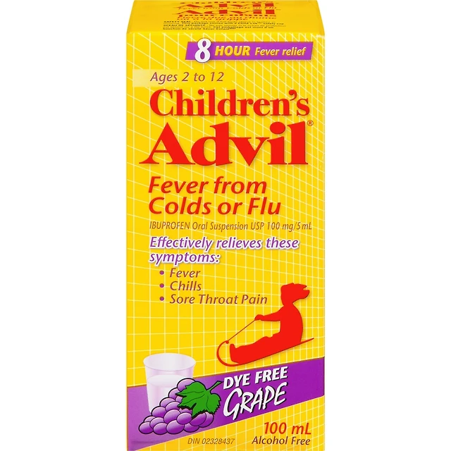 Advil pour Enfants Fièvre Due au Rhume ou à la Grippe Suspension Orale d'Ibuprofène à 100 mg/5 ml, USP Raisin 100 ml