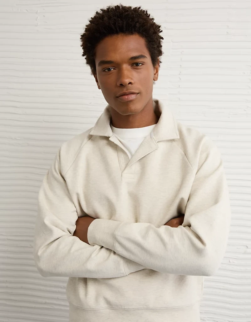 AE 24/7 Long-Sleeve Rugby Polo Sweatshirt