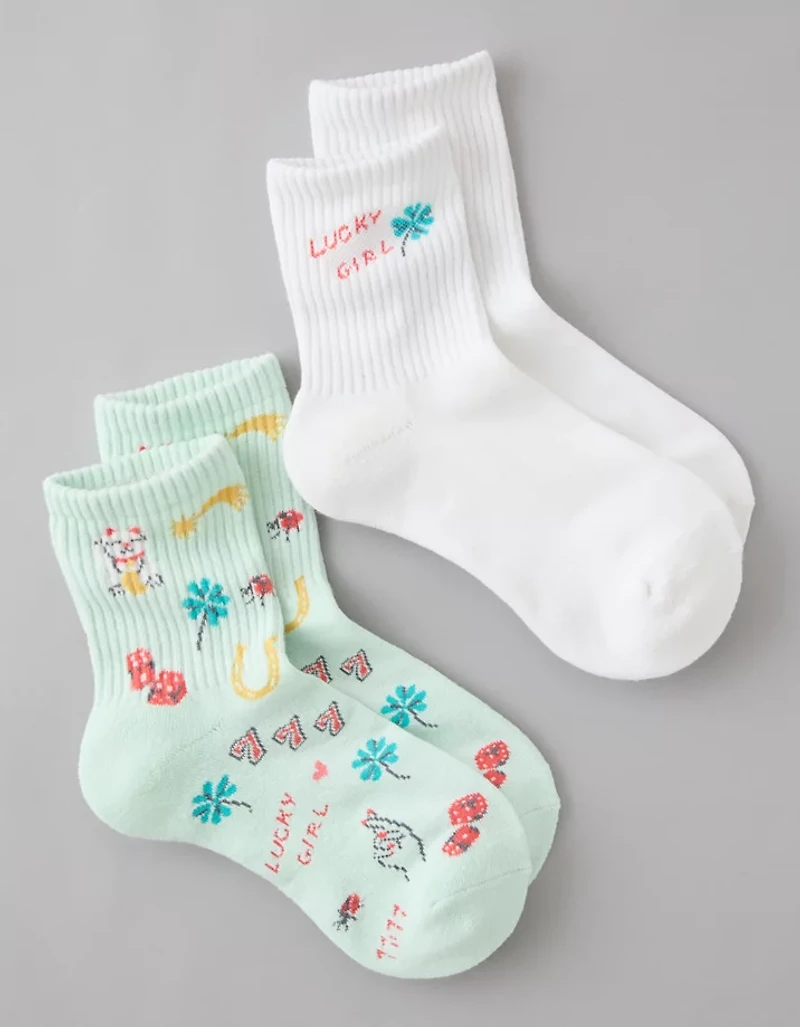 AE Lucky Girl Cropped Crew Socks 2-Pack