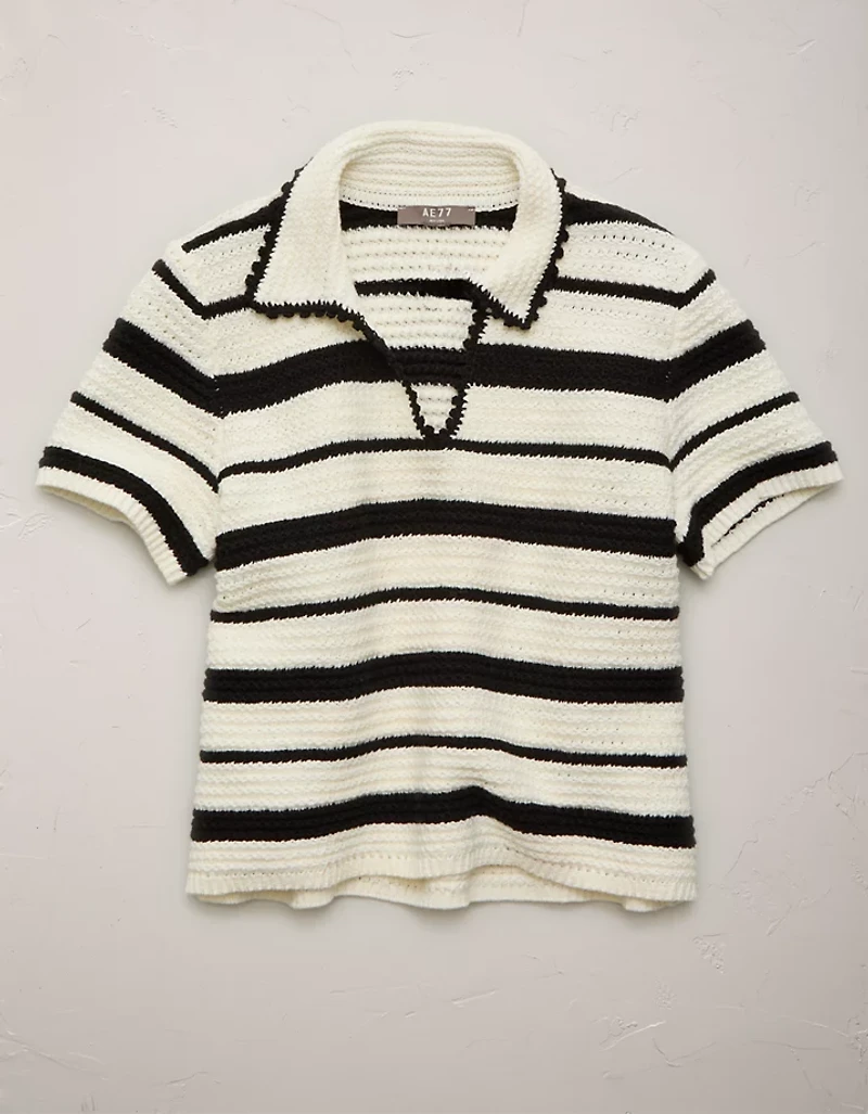 AE77 Shrunken Crochet Sweater Polo