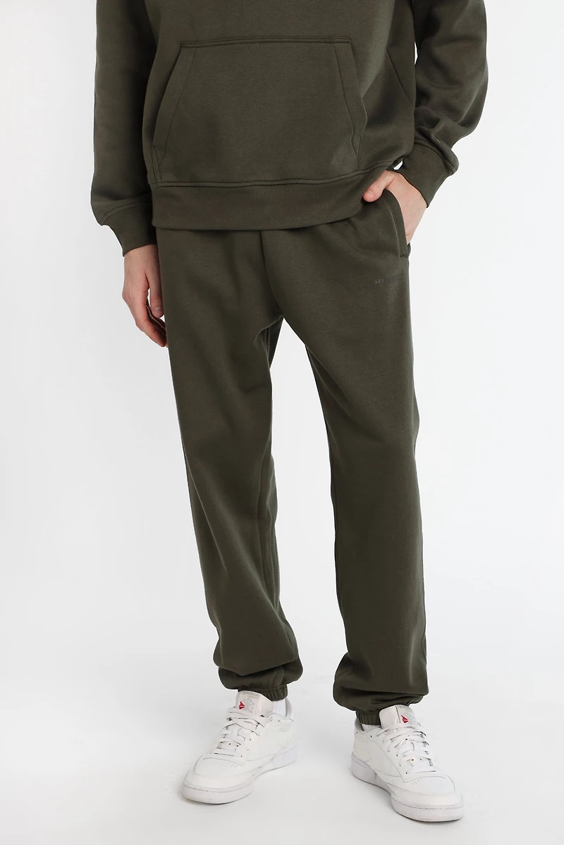 Knit fleece. Sweatpants with a relaxed fit throughout. Elastic cinch leg cuff. Sits on waist with a 29" inseam. Small branded print by pocket seam. Details• Knit• Fleece• Small print on thigh• 2 side slant pockets • Elastic waistband• Imported• Style: 6307-2604 Fit• Sits on waist• Relaxed fit with cinched cuffs• Approx. Inseam: 30.5"• Model height: 6'1", wears a size: M Care & Materials• 65% Polyester, 35% Cotton• Machine wash cold. Hang to dry or tumble dry low.