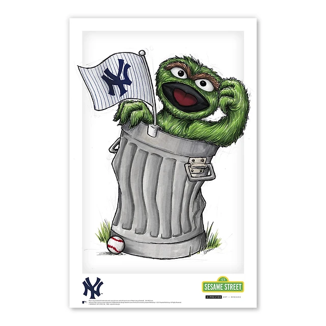 Affiche imprimée de Sesame Street avec Oscar le Grouch des Yankees de New York 11" x 17"