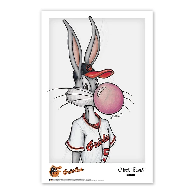 Affiche imprimée Looney Tunes de Bugs Bunny Baltimore Orioles 11" x 17"