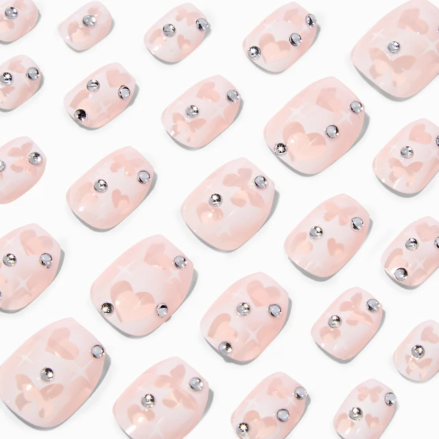 Airbrush Heart Coffin Press On Faux Nail Set - 24 Pack