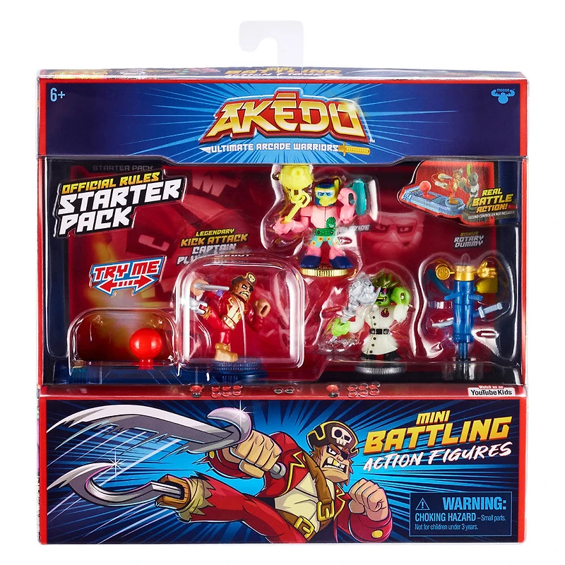 Prepare for battle with the Akedo Ultimate Arcade Warriors Starter Pack. This special pack gives you all you need to play the official tournament rules of Akedo. Train your Warriors to be their best and practice using the bonus training piece. It's perfect for getting your Warriors match ready as they perfect the ultimate Split Strike. The Starter Pack includes three Arcade Warriors: One of which is a Legendary Warrior with a realistic kicking or punching action who can deliver a Split Strike with his powerful blow. Place your Warriors on your Exclusive Joystick Controller that only comes in this pack and train your team for next level battling action!