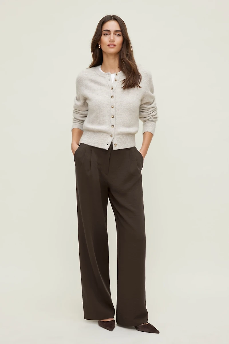These pants are made from airflow—our flowy and lightweight crepe fabric with a subtle crinkle for a cool, polished feel. They're designed to sit high at your waist with a relaxed seat that flows into a draped wide leg. With pleated detailing, these