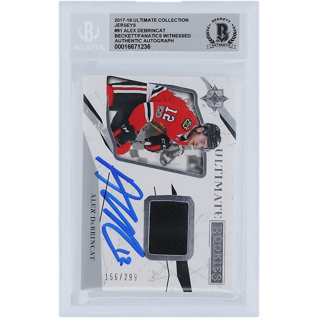 Alex DeBrincat Chicago Blackhawks dédicacés 2017-18 Upper Deck Ultimate Collection Maillots Black Relic #91 #/299 Beckett Fanatics ont été témoins authentifiés de la carte 10 Rookie