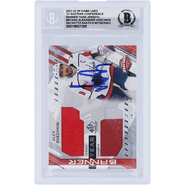 Alexander Ovechkin Washington Capitals Autographié 2021-22 Upper Deck SP Games Utilisé '21 Bannière de la Conférence Est Année Maillot Rouge Reliques de Bannière Rouge/Grise #BYA-AO Beckett Fanatics Témoin Authentifié 10 Carte