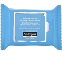 Neutrogena All-in-One makeup Removing Cleansing Wipes gently erase 99 percent of makeup, even Waterproof mascara. Infused with mild cleansing Lotion, these biodegradable wipes clean pores to remove dirt, oil, and impurities to leave skin feeling fresh and looking clean.